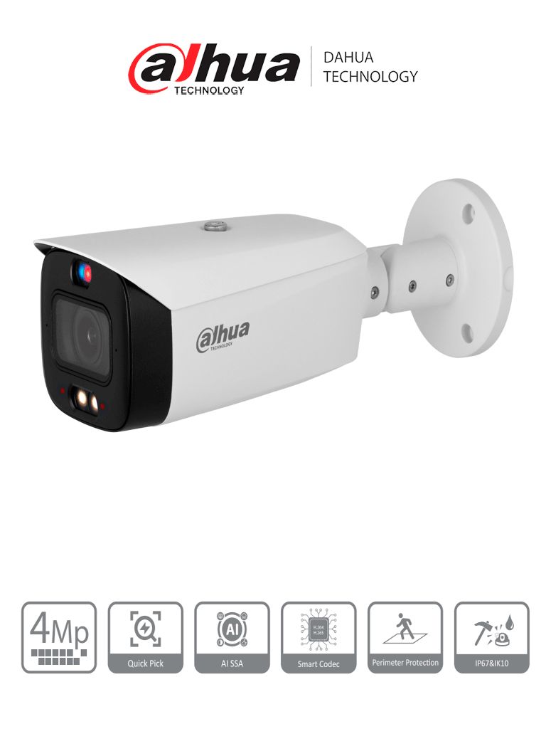 IP DAHUA DH-IPC-HFW1239S1P-LED-0280B-S4 - FULL COLOR - 2MPX - BULLET - 2.8MM - METALICA BASE PLASTICA - EXTERIOR - POE - H.265 - 30MTRS IR